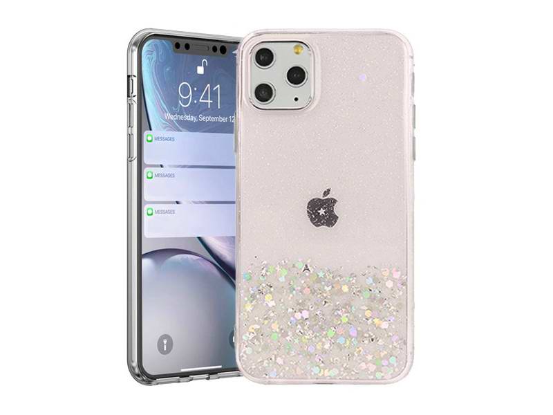 Gelové pouzdro je vyrobeno z kvalitního pružného gelu (TPU). Díky tomu lze pouzdro různě ohýbat, kroutit a nemusíte se bát, že by se kryt jakkoliv poškodil. Pokud jej navléknete na svůj telefon, skvěle na něj padne. Tloušťka gelu se pohybuje kolem 1.5mm a zbytečně tak nezvětšuje Váš mobil. Díky pružnému materiálu dodává telefonu vysokou ochranu proti pádu a různým škrábancům. Pouzdro je vždy čiré, takže nepřijdete o barvu svého telefonu. Na zadní straně jsou zality hvězdičky a glitry s holografickým efektem.