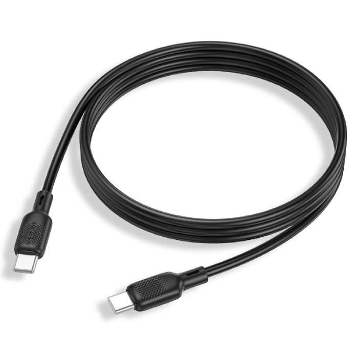 Nabíjecí kabel Borofone BX113 Lenny - Type-C na Type-C - PD 60W 3A 1 metr v černé barvě je spolehlivý a flexibilní silikonový nabíjecí kabel určený pro vysokorychlostní nabíjení notebooků a chytrých telefonů. Podporuje napájení Power Delivery až 60 W, což je ideální pro zařízení náročná na napájení.
