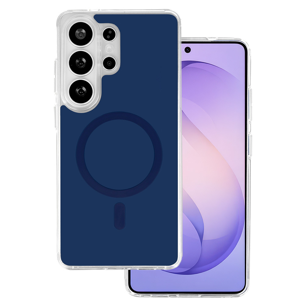 Glossy Magsafe Case pro Samsung Galaxy S25 Ultra navy je ochranný obal navržený speciálně pro tento model telefonu. Kombinuje flexibilitu a pevnost díky hybridní konstrukci z TPU a PC, která poskytuje efektivní ochranu proti pádům, poškrábání i běžnému opotřebení. Obal je kompatibilní s MagSafe technologií, což umožňuje snadné připevnění příslušenství a rychlé bezdrátové nabíjení bez nutnosti sundávat kryt.
