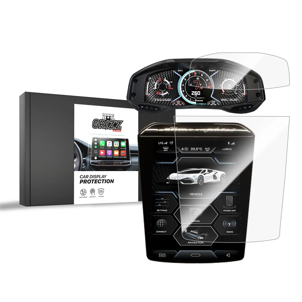 - Ochranná fólie na displej (1 ks) - Kryt Ceramic GrizzGlass CarDisplay Protection Lamborghini Revuelto 2024-2025 [2in1]