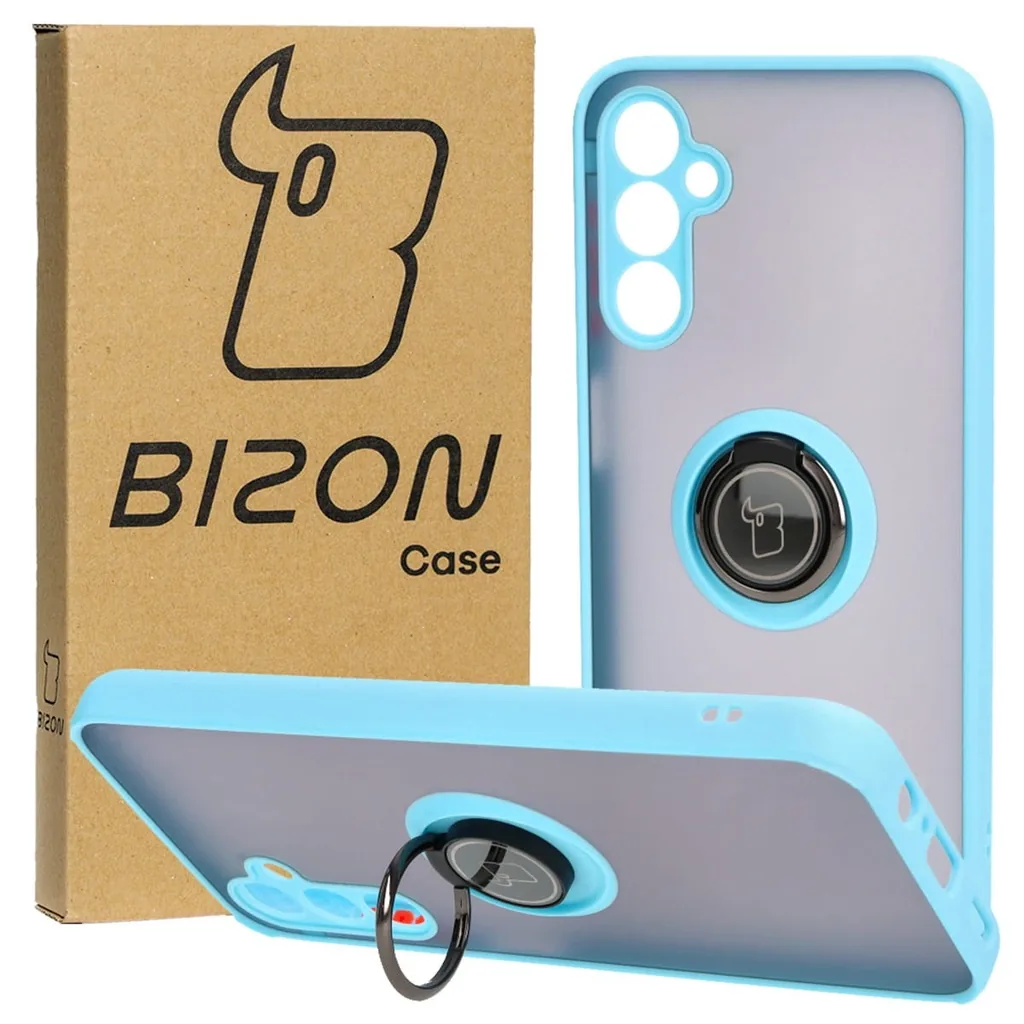 Kryt Bizon Case Hybrid Ring Samsung Galaxy M14 5G smoky with a light blue frame
