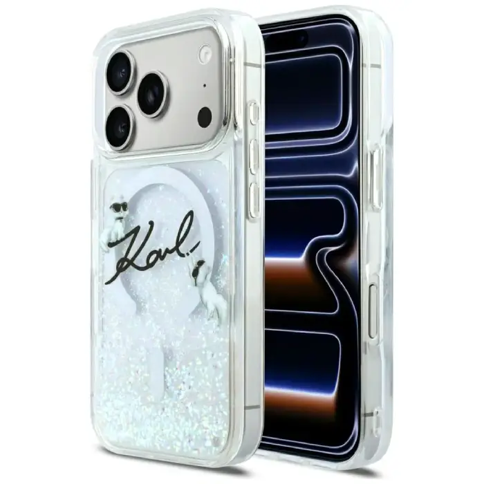 - název krytu: Kryt Karl Lagerfeld Liquid Glitter Karl Script Logo MagSafe Apple iPhone 17 Pro clear