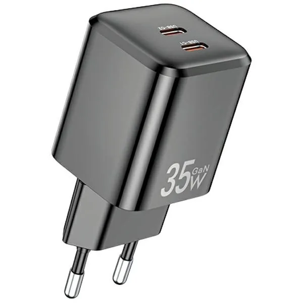 Síťová nabíječka AWEI PD65-EU GaN 35W 2xUSB-C black
