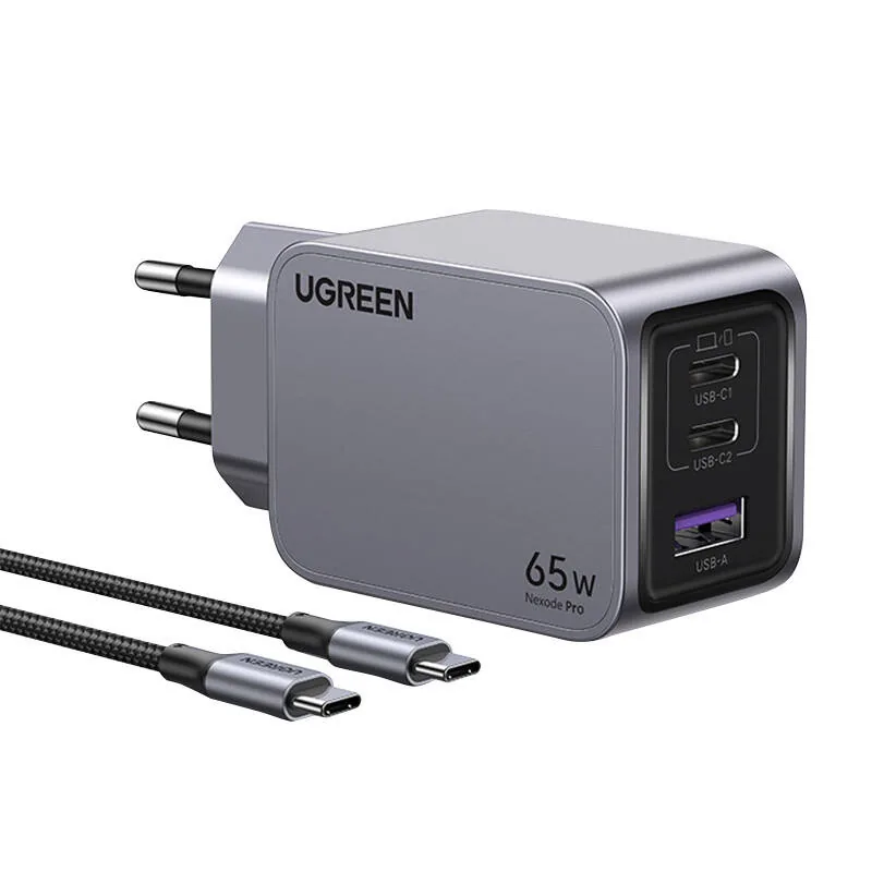 Síťová nabíječka UGREEN Nexode Pro USB-A, 2xUSB-C 65W + USB-C / USB-C cable 1.5m black