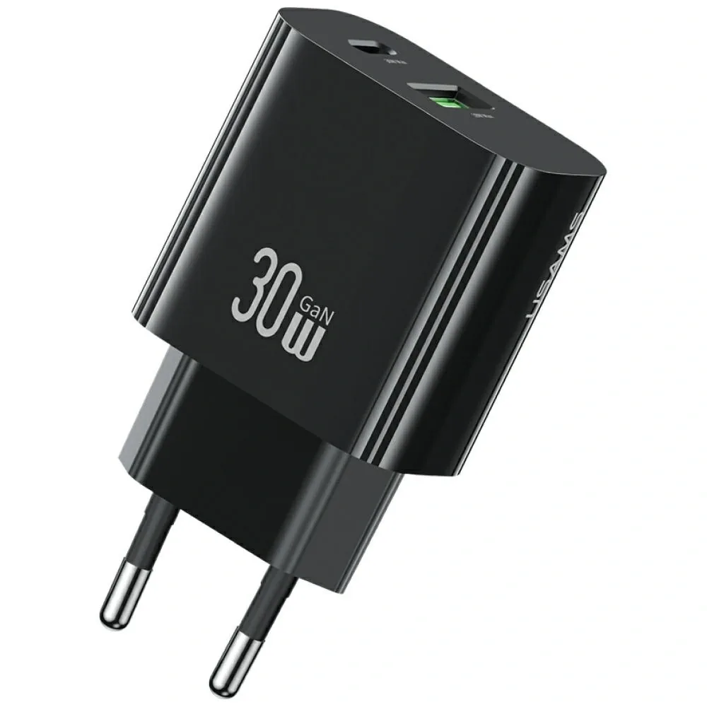 USAMS CC316 T65 je černá síťová nabíječka s výkonem 30W určená pro rychlé nabíjení elektronických zařízení. Disponuje dvěma porty – USB-C a USB-A – které umožňují současné nabíjení až dvou zařízení, například smartphonu a tabletu.